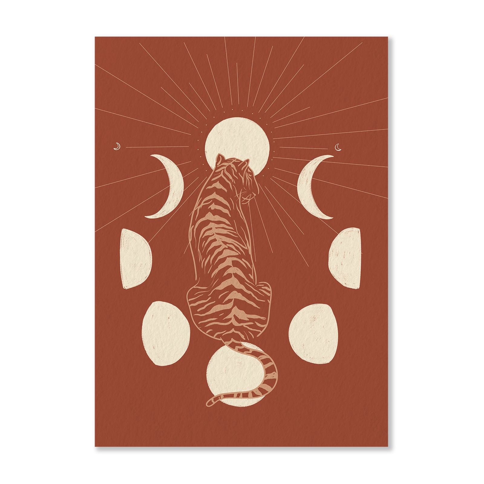 Een tijger, de maanfases en een vleugje magie—de perfecte mix voor een originele poster aan je muur!